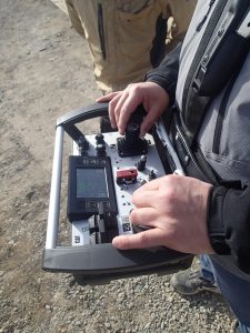 リモコン操縦で作業中